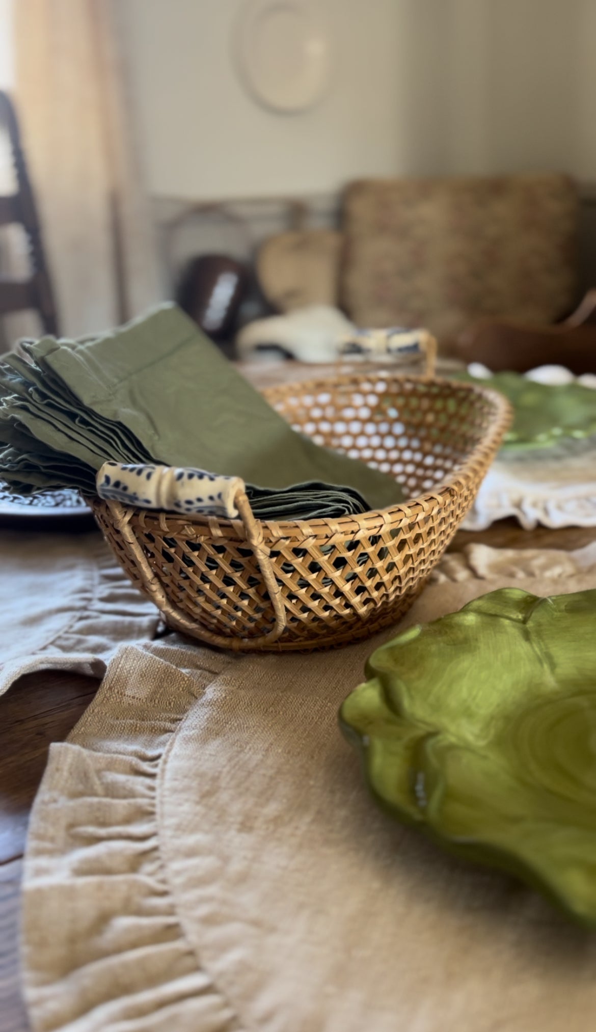 Basket with Blue and White Handles