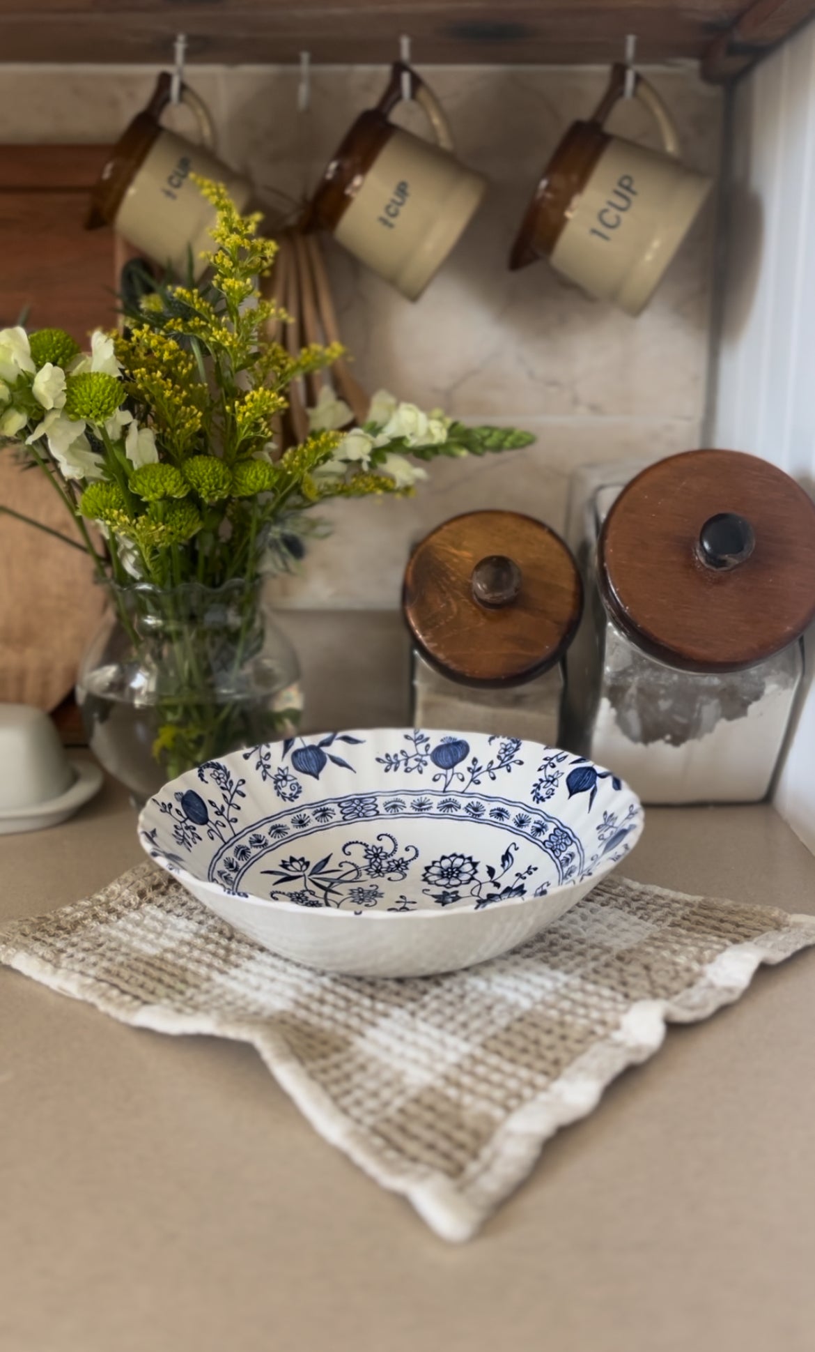 Mix, whisk, and blend with ease in this vibrant Blue Nordic Mixing Bowl. Its bold color adds a pop of personality to any kitchen, while its durable construction ensures it can handle all your mixing needs. In great vintage condition!