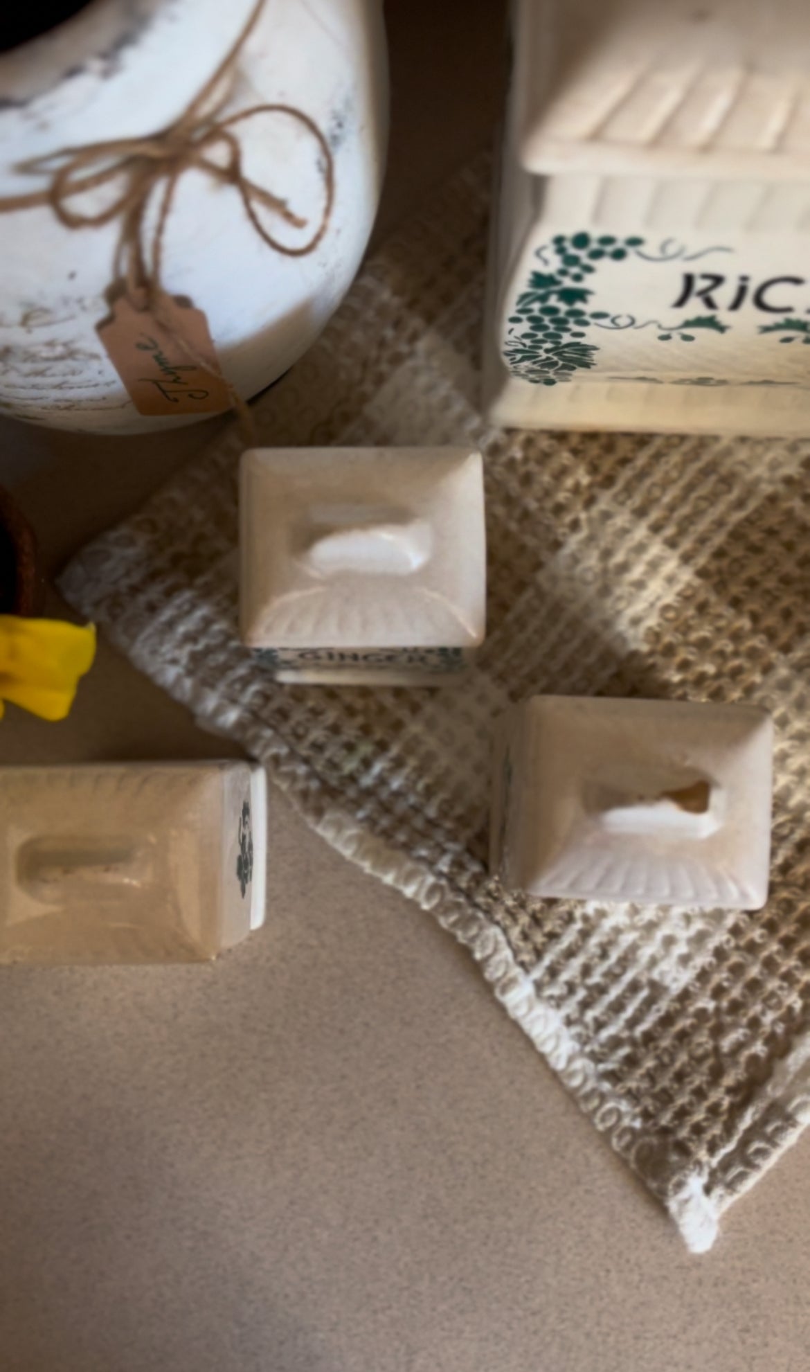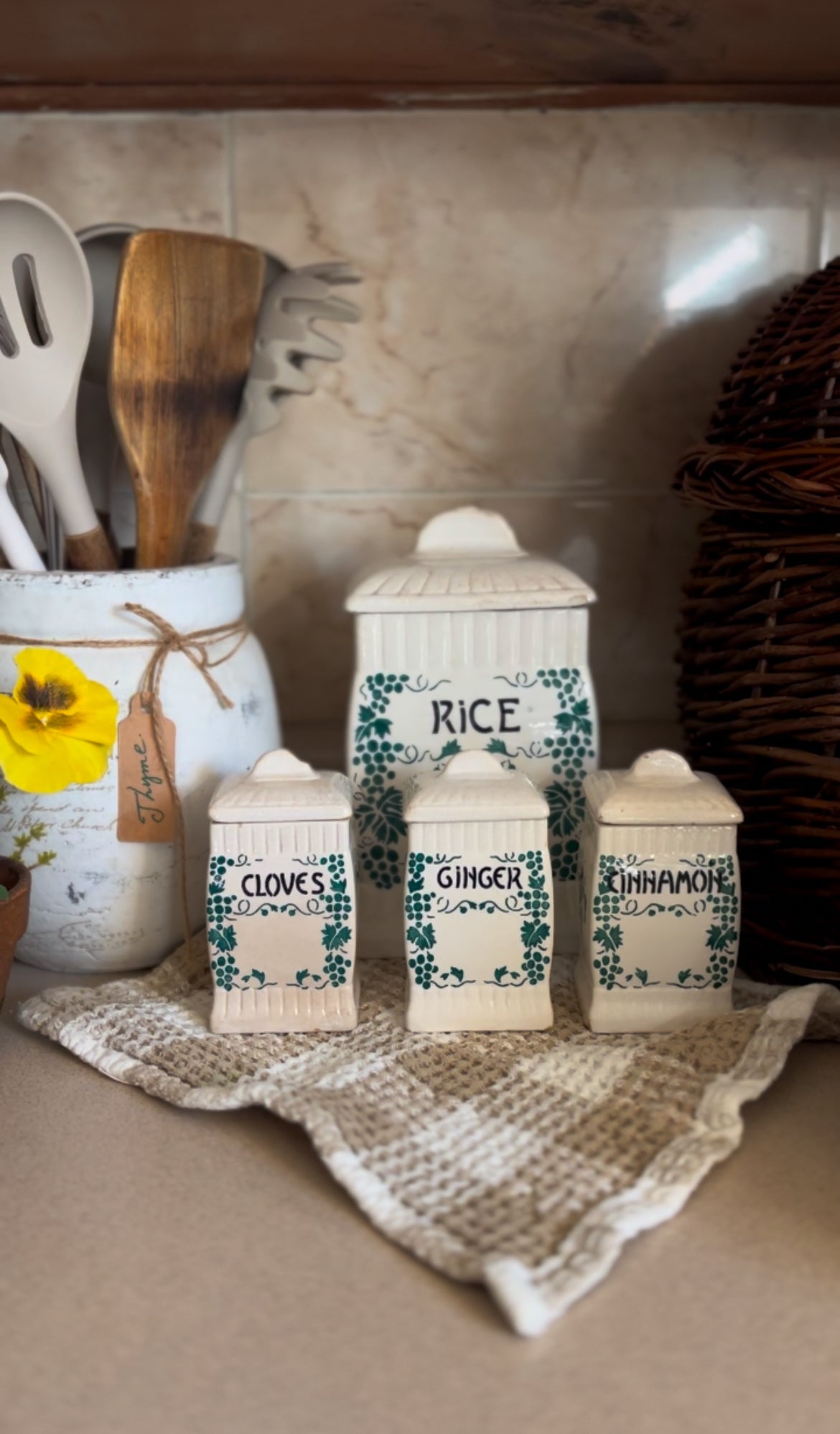 Ceramic Canister Set made in Germany (ginger sold. Rice, cloves, and cinnamon left)