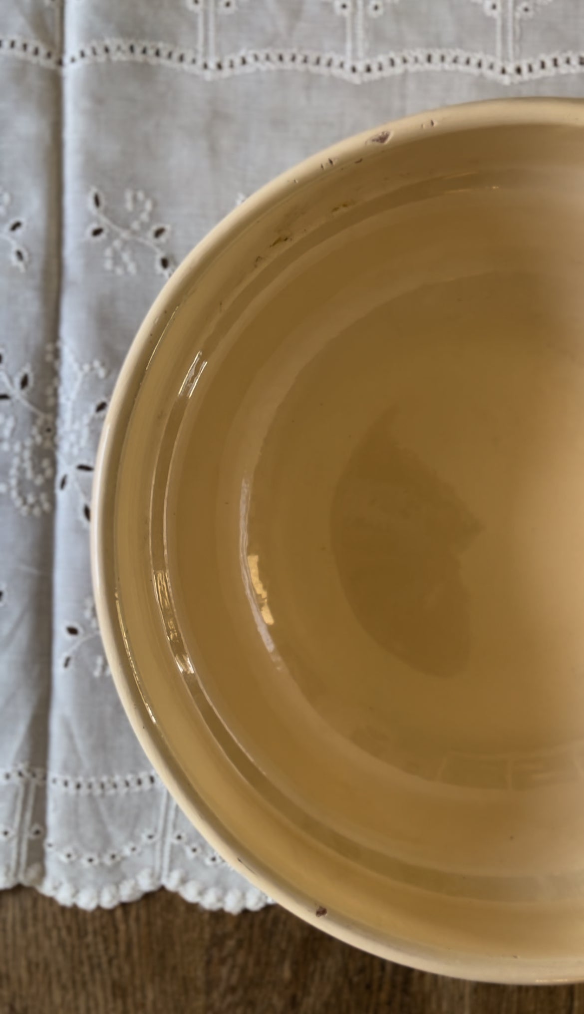 Whisk up some fun in the kitchen with this Hungarian Slipware Pottery Mixing Bowl! Featuring a charming pink floral rim, this bowl is perfect for mixing and serving all your delicious creations. Add a touch of whimsy to your cooking routine with this unique and playful bowl. In good vintage condition with minor chipping on the rim due to age and use.