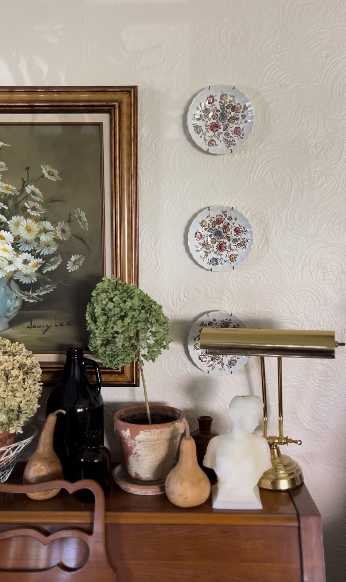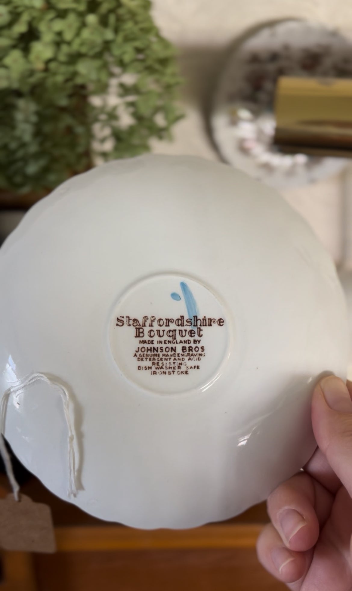 Add a playful touch of vintage charm to your walls with this Set of 3 Staffordshire Bouquet Saucers made in England. Perfect for wall decor, these saucers brighten any room with their cheerful floral designs while adding a whimsical flair to your space. In great vintage condition, no chips or cracks!