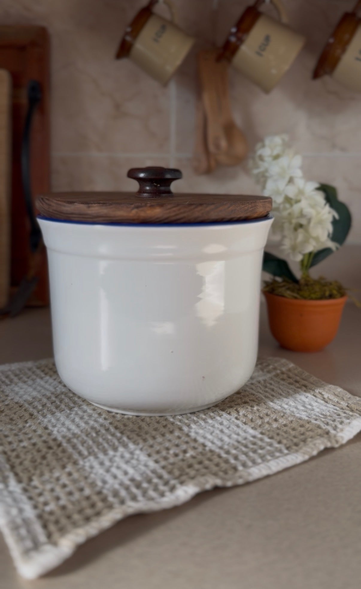 Store your kitchen essentials in style with this enchanting set of three vintage Rosenthal Netter ceramic canisters! Each piece features the beloved blue geese design that brings a touch of whimsy to your countertop. Topped with hand-made wooden lids that add rustic charm, these canisters are perfect for keeping any pantry staples organized. The combination of Italian ceramic craftsmanship and artisanal wooden details makes this set a true showstopper—functional art that celebrates vintage character. Whether you're a collector of timeless treasures or simply love adding personality to your kitchen, these geese-adorned beauties are sure to become conversation starters! In good vintage condition with minor chips on the rim of the canisters.