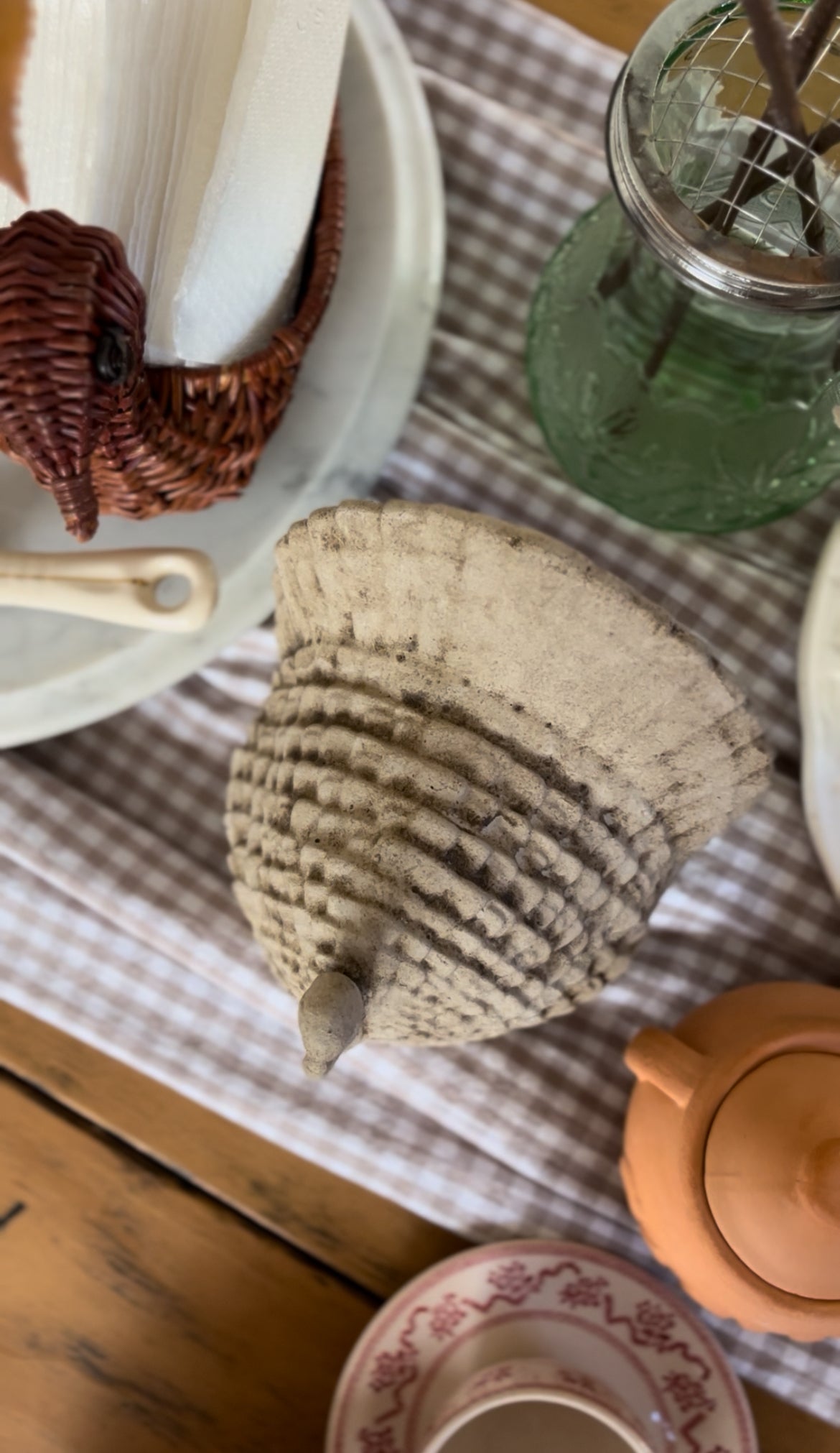 Gobble up the fun with this charming Turkey Cookie Jar! Refinished with a paint and baking soda mixture, then finished with a warm antique glaze. It’s the perfect playful spot to stash your sweet treats. Add a dash of festive flair to your kitchen! In good vintage condition with minor wear and tear.