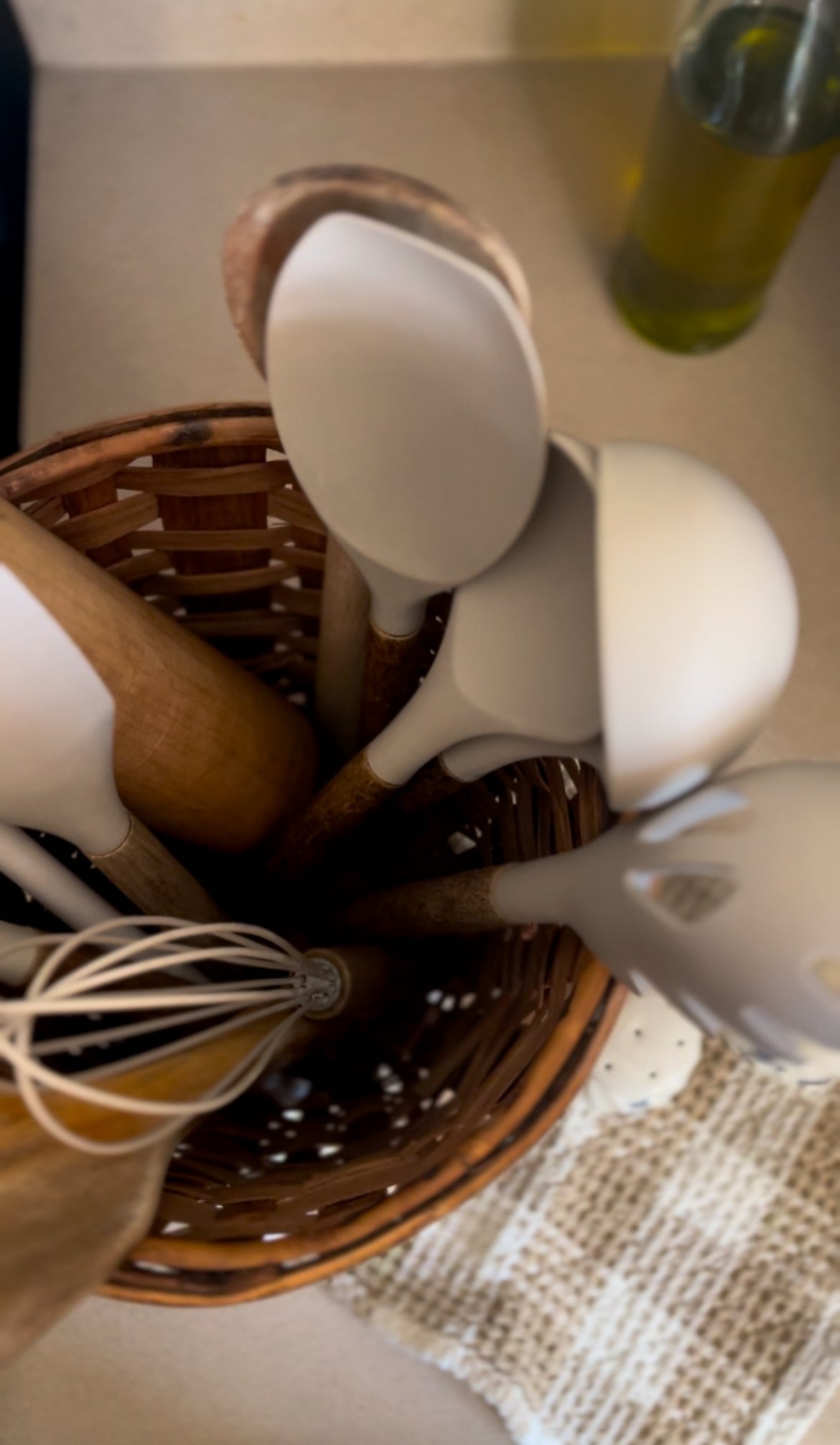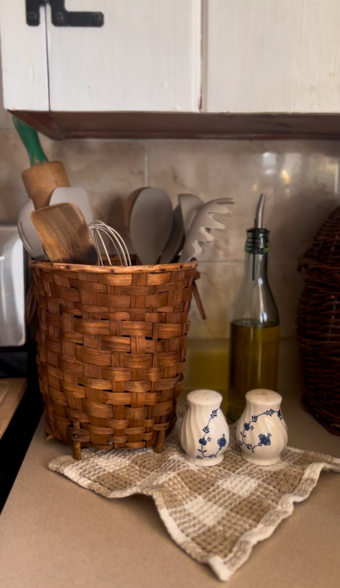 Organize your kitchen with flair using our Woven Footed Basket with Handles. Keep your utensils close at hand while adding a touch of rustic charm to your space. With sturdy construction and stylish design, this basket is the perfect addition to any home. In good vintage condition!